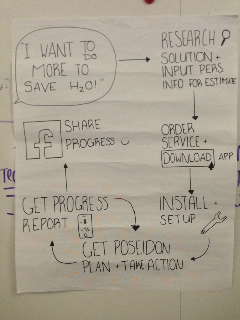 My team chose the topic of water conservation, and brainstormed pain points that we could solve with a designed service.